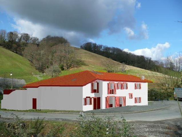 Salles de restaurants et vente de produits fermiers côté route, création d'un logement avec terrasse pour les propriétaires, accès par escalier extérieur côté jardin .