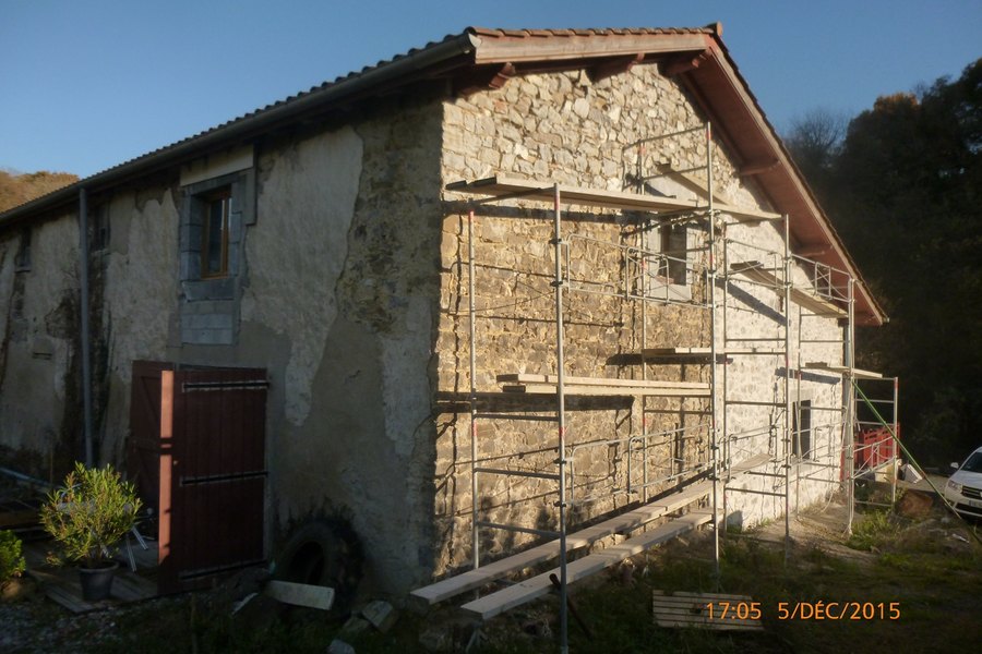 - Ajout d'un garage sous UN prolongement de toiture afin de séparer les 2 appartements, un côté Est, l'autre à l'Ouest. Travaux en cours.