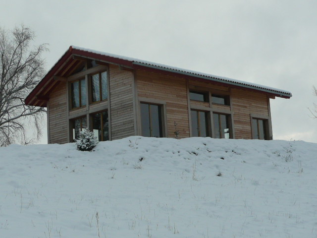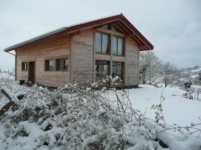Maison passive récupérant les apports solaire par l'orientation des baies au Sud et à l'Ouest. Chauffage assuré par plancher chauffant alimenté par géothermie.