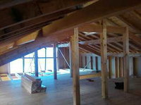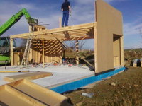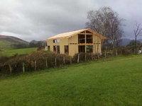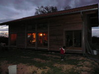 Éco construction : bois de mélèze non traité, protection termites assurée par termifilm. Murs respirants constitué d'Agepan contreventement et pare pluie, isolation par 14 cm de laine de bois, freine-vapeur Kraft. Cloisons intérieures isolées acoustiquement par panneaux de cellulose fabriqués à partir de papier recyclé.