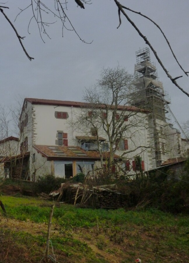 Projet de véranda orientée à l'ouest en structure bois pour une maison forte du XIIe siècle au pays basque.